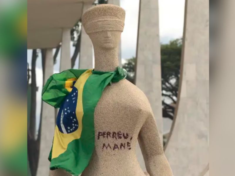 ‘Perdeu, Mané’: STF torna ré mulher que pichou estátua da Justiça