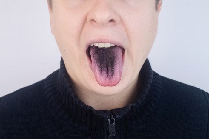 As línguas também podem ser descoloridas de branco e, acredite ou não, de preto. Condições como aftas podem causar uma língua branca, enquanto ‘villosa nigra’ (condição benigna e assintomática) significa uma lígua preta e ‘peluda’. O nome vem do alongamento das menores papilas, de modo que elas se parecem com cabelos. Está associada ao fumo, à boca seca e à falta de higiene bucal.