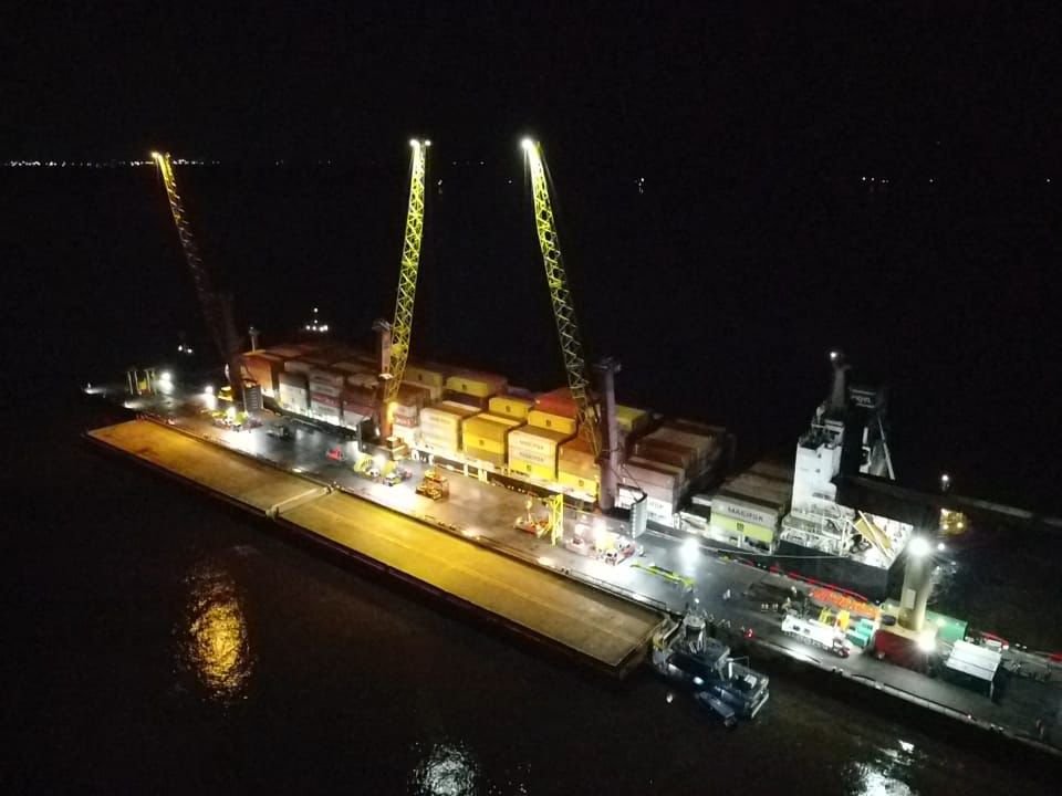 Esta semana, teve início a operação Chibatão em Movimento no Píer Flutuante Provisório do Grupo Chibatão, em Itacoatiara, com a atracação do navio Log-In Jacarandá, carregado com 1.032 contêineres. A operação, que envolve a transferência de 360 contêineres para balsas, marca um avanço significativo para a logística no Amazonas, garantindo o fluxo de mercadorias essenciais em meio à estiagem severa que afeta a região.