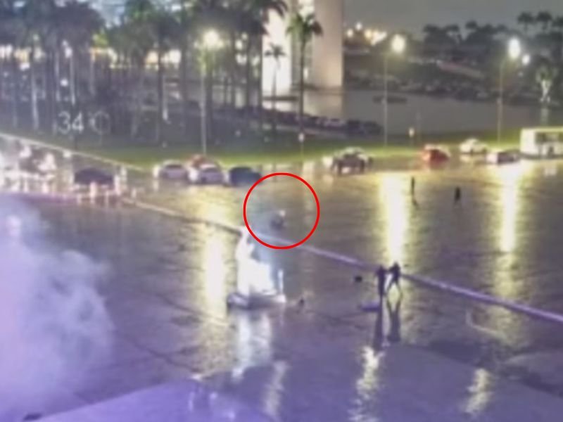 Após essa primeira detonação, “Tiu França” é visto lançando outro explosivo em direção ao prédio do Supremo Tribunal Federal (STF). As imagens capturam várias explosões ocorrendo quase simultaneamente, o que leva os seguranças da área a se afastarem rapidamente para garantir a própria segurança. A situação rapidamente evolui para um cenário caótico, com a fumaça envolvendo toda a área e alertando as autoridades presentes.