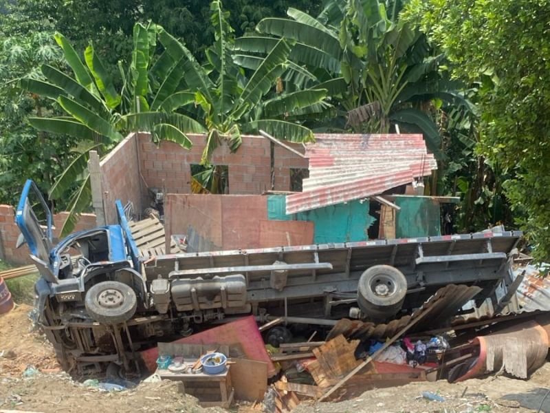 Segundo informações preliminares, por volta das 11h15, um caminhão que passava pela via acabou perdendo o controle e tombando em um barranco. O veículo, que fazia entrega de cimento, não suportou o peso da carga e desabou sobre a residência.