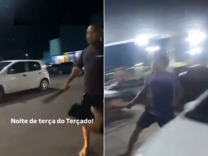 Manaus (AM) – Na noite desta terça-feira (3), um vídeo que circula nas redes sociais mostrou uma briga generalizada em frente à Feira da Panair, no bairro Educandos, zona Sul de Manaus. As cenas impressionam pela violência: dois homens aparecem empunhando terçados e trocando golpes, enquanto outras pessoas tentam se afastar da confusão.