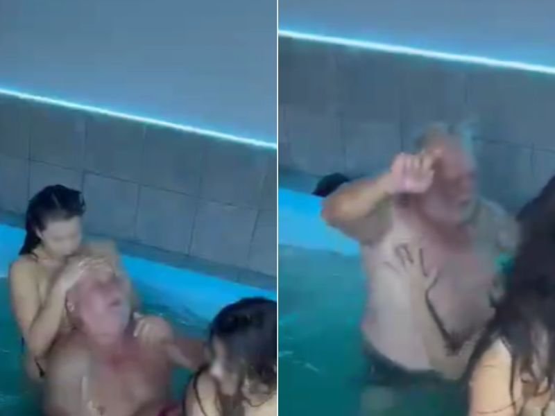 Nas imagens que circularam nesta quinta-feira (12), o “Papai Noel de Manaus” aparece relaxando em uma piscina com hidromassagem, cercado por três mulheres esbeltas, enquanto uma quarta jovem grava a festinha. Com os seios de fora, duas agarram o “coroa”, dançando na ao som de Tierry – Cabeça Branca.