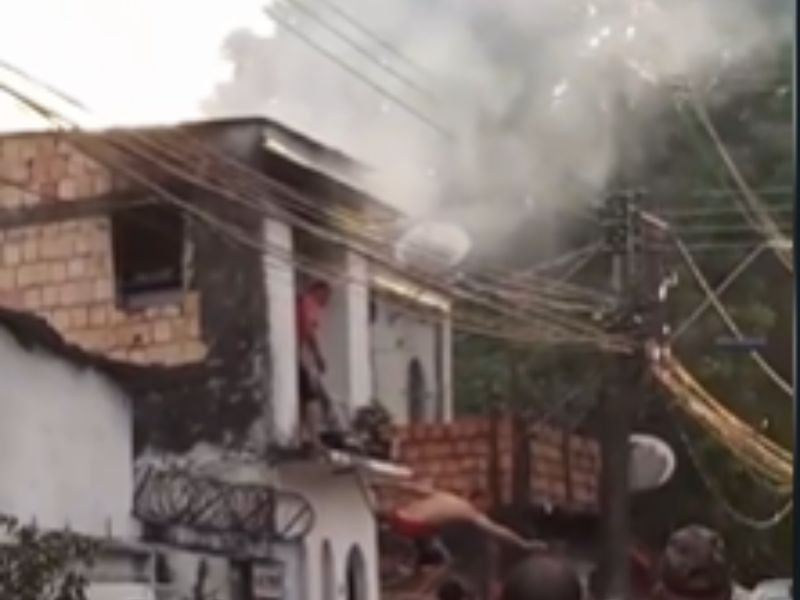 VÍDEO: moradores tentam conter incêndio em casa de dois andares em Manaus