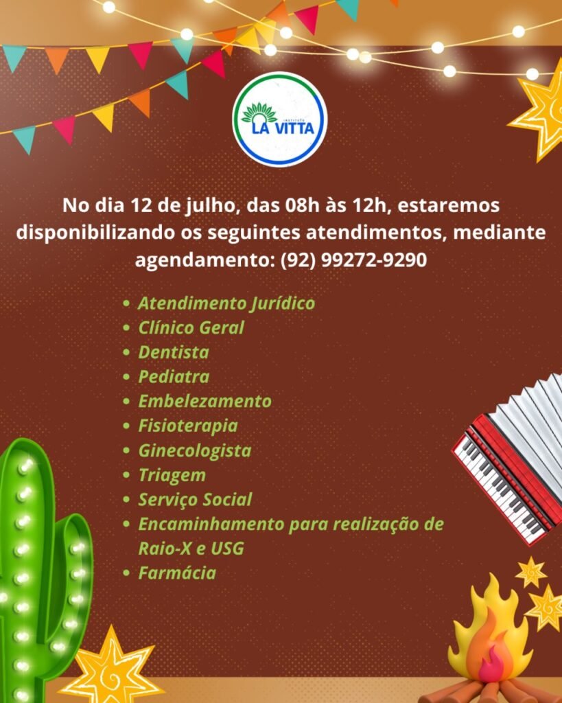 O mês mais esperado do ano já começou, e com ele o Instituto La Vitta prepara uma grande ação social com atendimentos gratuitos nas áreas da saúde e jurídica. A atividade será realizada em sua sede, localizada na Rua Ângelo Bitencourt, n.º 2, bairro Planalto, zona Centro-Oeste de Manaus.