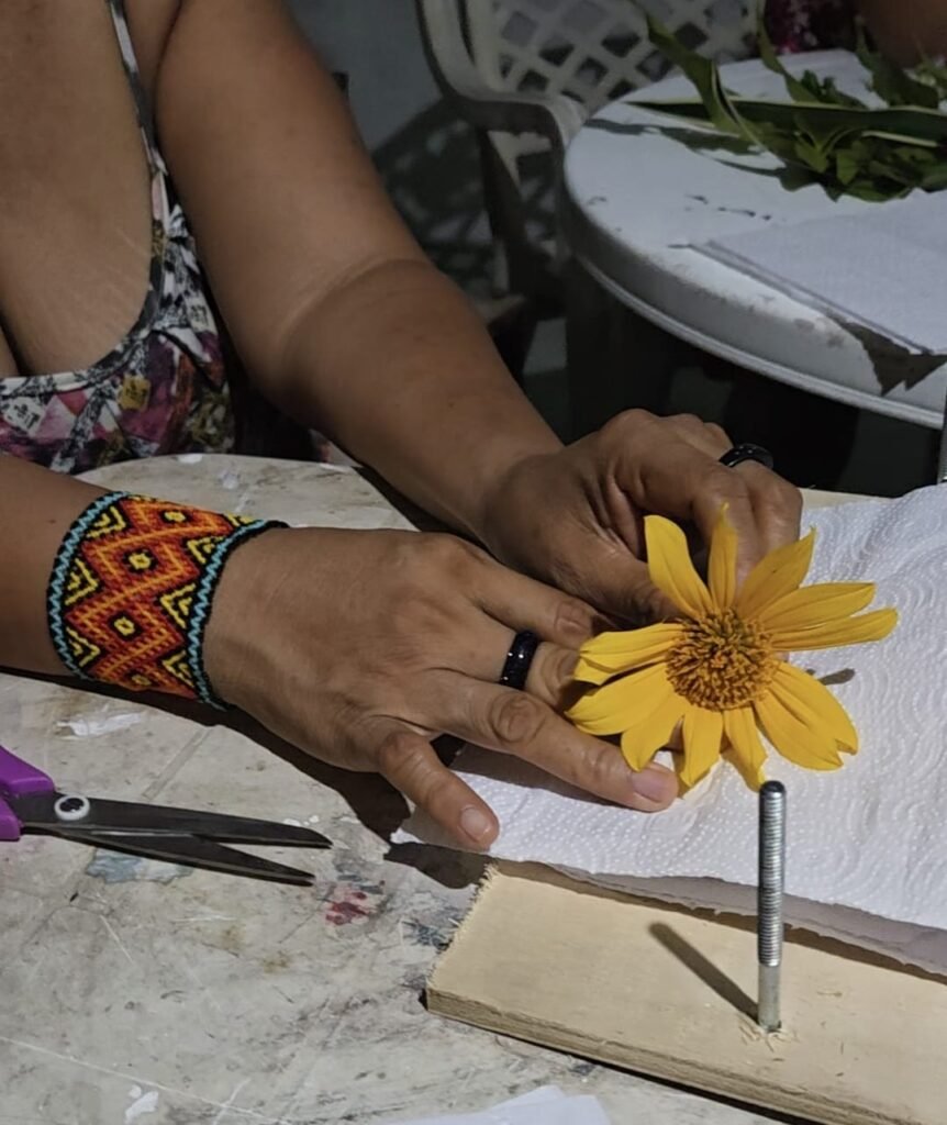 A oficina tem como instrutoras Deisy Saraiva, bióloga, especialista em taxonomia de Bromélias, com atuação no Herbário da Universidade Federal do Amazonas (Huam) e Maira Anália Duarte de Souza, professora da UFAM, com experiência em botânica aplicada e extensão comunitária e está sendo realizada no espaço ArteNaMata Cultura, do artista visual Zeca Nazaré, morador da comunidade do Livramento.