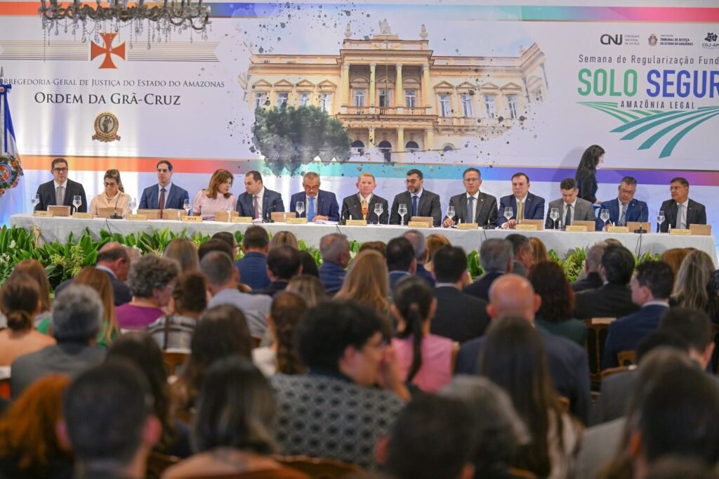 “Em nosso Estado, sob a coordenação desta Corregedoria-Geral de Justiça, a exemplo do Solo Seguro Favela, ocorrido no último mês de junho, reafirmamos que é plenamente possível conjugar segurança jurídica, inovação tecnológica, eficiência administrativa e cooperação interinstitucional em prol da cidadania plena. Até o final deste mês, alcançaremos a marca de 15 mil regularizações fundiárias, beneficiando aproximadamente 75 mil cidadãos amazonenses em Manaus e nos municípios de Iranduba, São Sebastião do Uatumã, Novo Airão, Japurá, Benjamin Constant, São Gabriel da Cachoeira e Barcelos, com previsão até o final do ano de atingirmos 20 mil regularizações, beneficiando, ainda, os municípios de Presidente Figueiredo, Rio Preto da Eva, Lábrea, Urucurituba e Itapiranga. Esses números, por si sós, revelam expressividade, mas seu verdadeiro alcance reside no fato de que cada título representa uma vida transformada, uma família reconhecida pelo Estado, um lar legitimado pela força do Direito”, afirmou o corregedor-geral de Justiça do Amazonas.